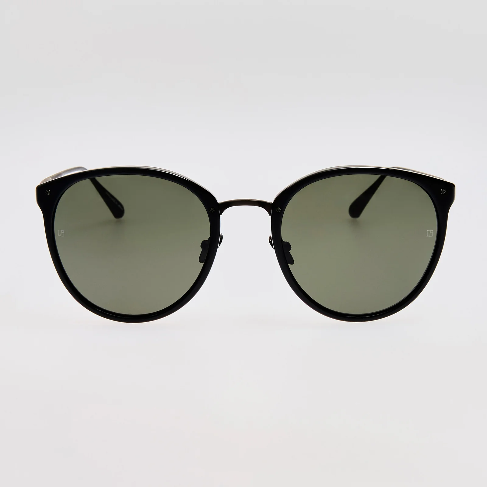 Культовая модель LINDA FARROW, Calthorpe представлена в новых цветовых решениях. Фирменные овальные солнцезащитные очки изготовлены из переработанного черного ацетата с матовой никелированной титановой оправой, переходящей в изящные зауженные дужки. Оснащены сплошными серыми линзами для защиты от УФ-излучения.