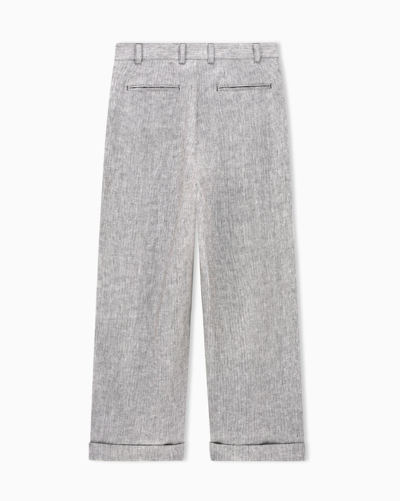 Брюки из свежего меланжевого льна. Модель имеет переднюю складку, создающую широкую драпировку, придающую изделию свободу движений, асимметричную застежку на молнию и пуговицу, а также боковые карманы. Универсальная вещь, которая стильно дополнит множество образов.