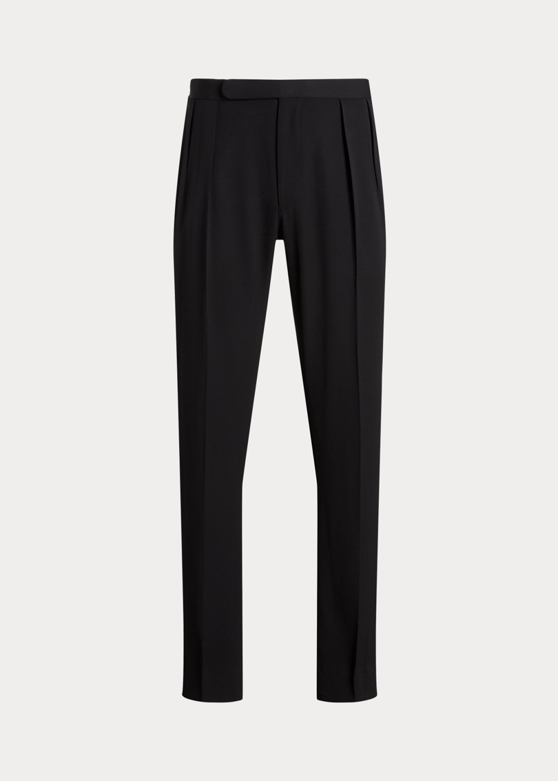Плиссированные брюки-смокинг сшиты вручную в Италии из мягкой шерсти баратея. Прекрасная ткань была соткана на исторической английской фабрике, основанной более века назад.