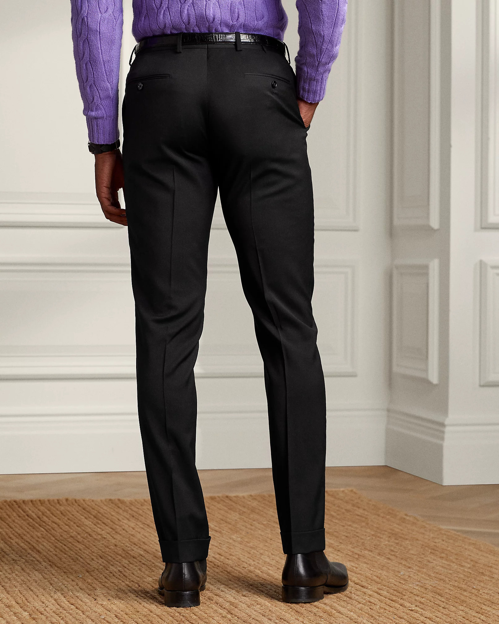Эксклюзивная шерстяная саржа в сочетании с прямым кроем придает этим брюкам непринужденную элегантность.