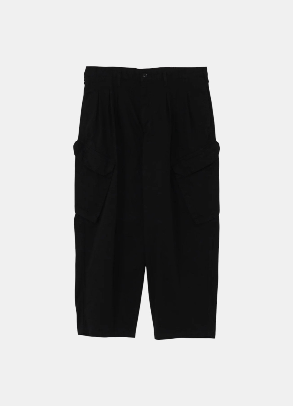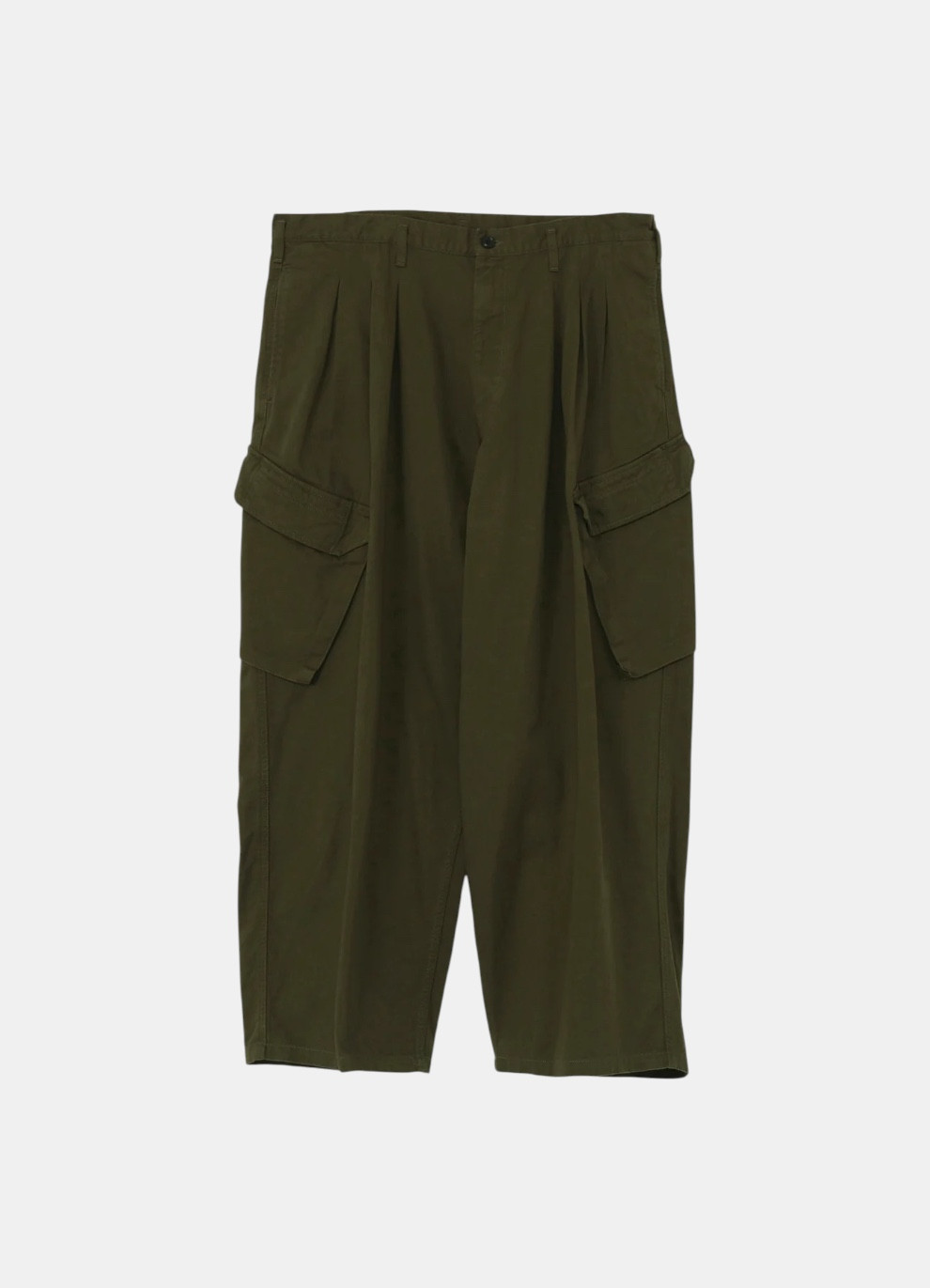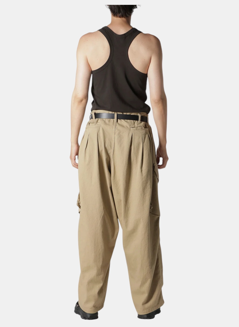 Брюки со складками изготовлены из саржевой ткани, сотканной из толстых нитей, образующих диагональные линии, называемые твилом. Крутой угол (45 градусов и более) линий твила обеспечивает легкое отведение воды, что делает ткань прочной и пригодной для рабочей одежды.