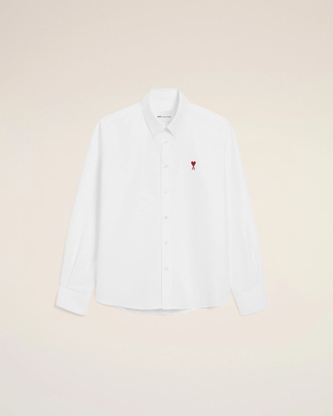 Рубашка Ami de Coeur на пуговицах из хлопкового оксфорда. Унисекс Классический крой. Красная вышивка Ami de Coeur на груди.