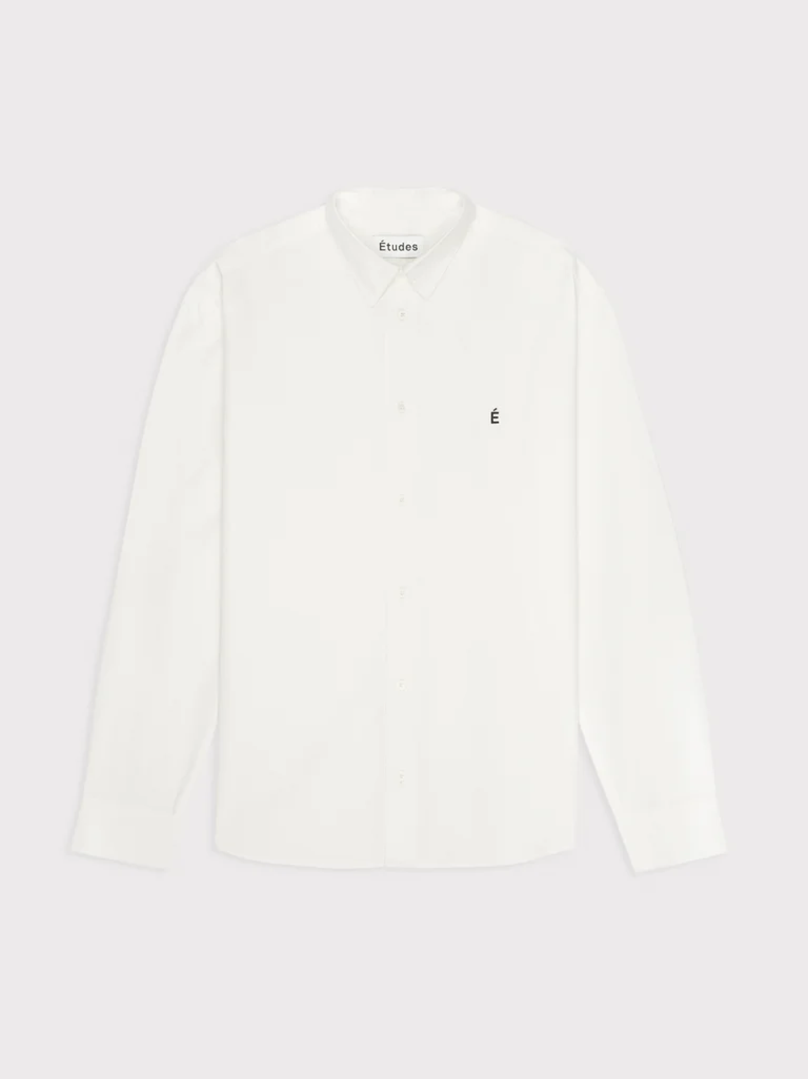 Состоит из застежки на пуговицы спереди, вышивки É на груди и серебряной заклепки Études.