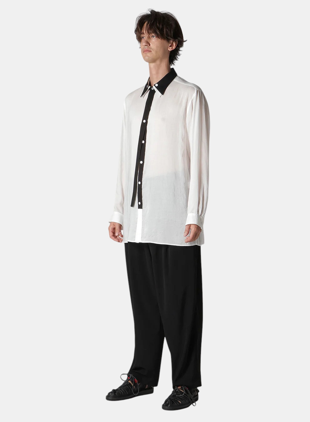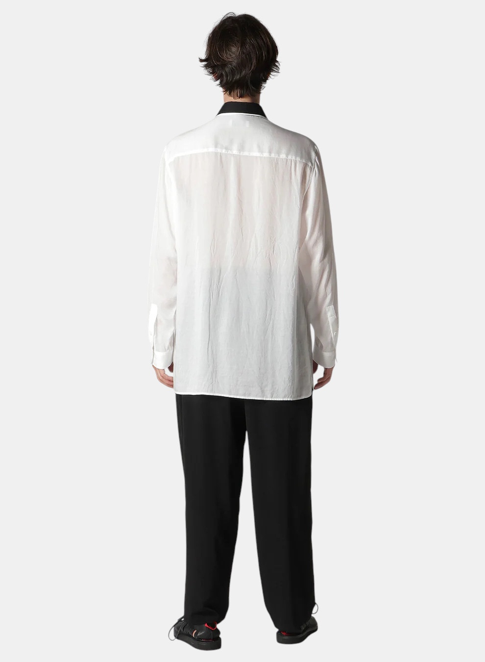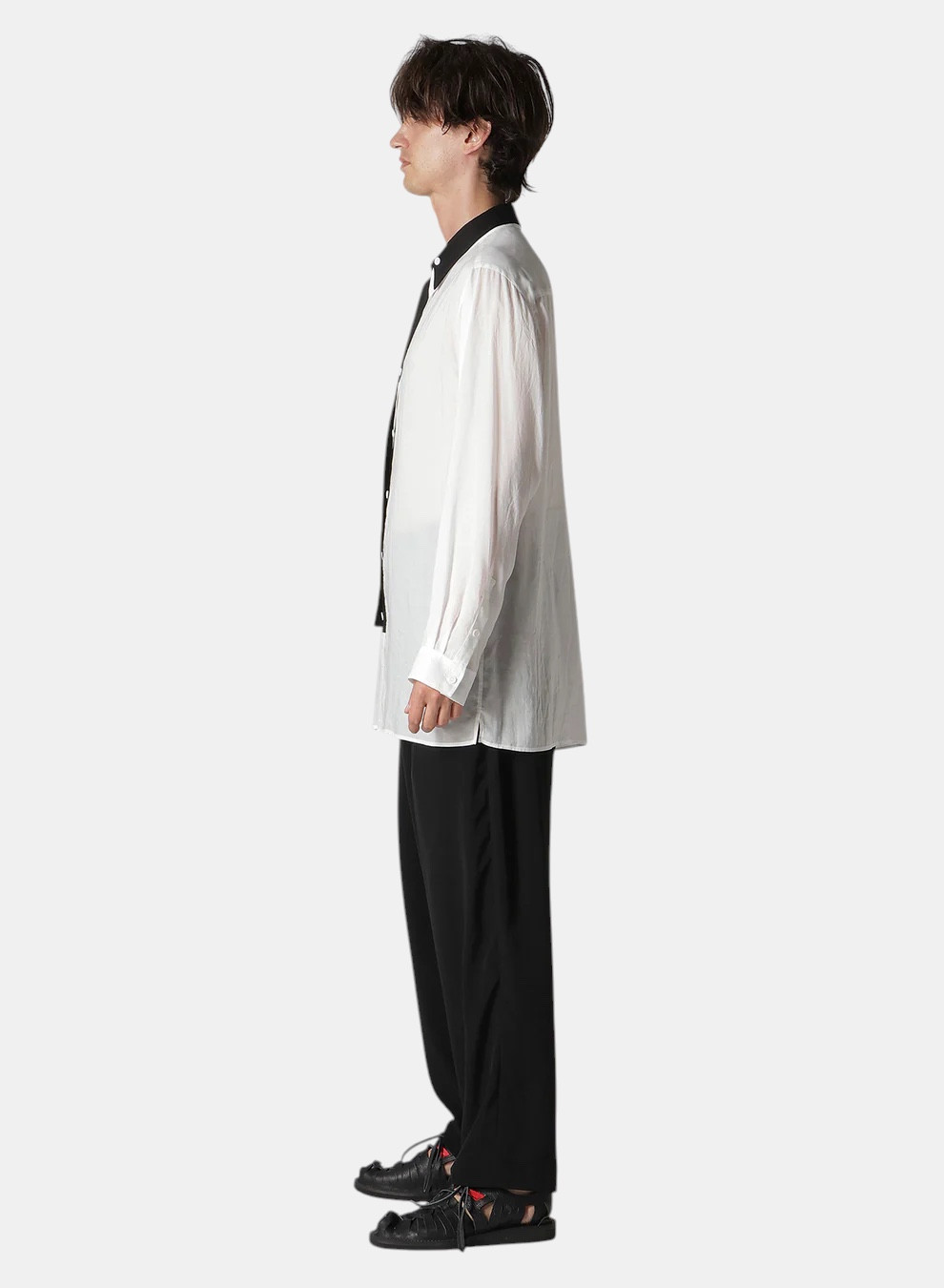 Рубашка с двойным воротником и завязкой спереди изготовлена из тонкой целлюлозной ткани, полностью сотканной из микровискозы.