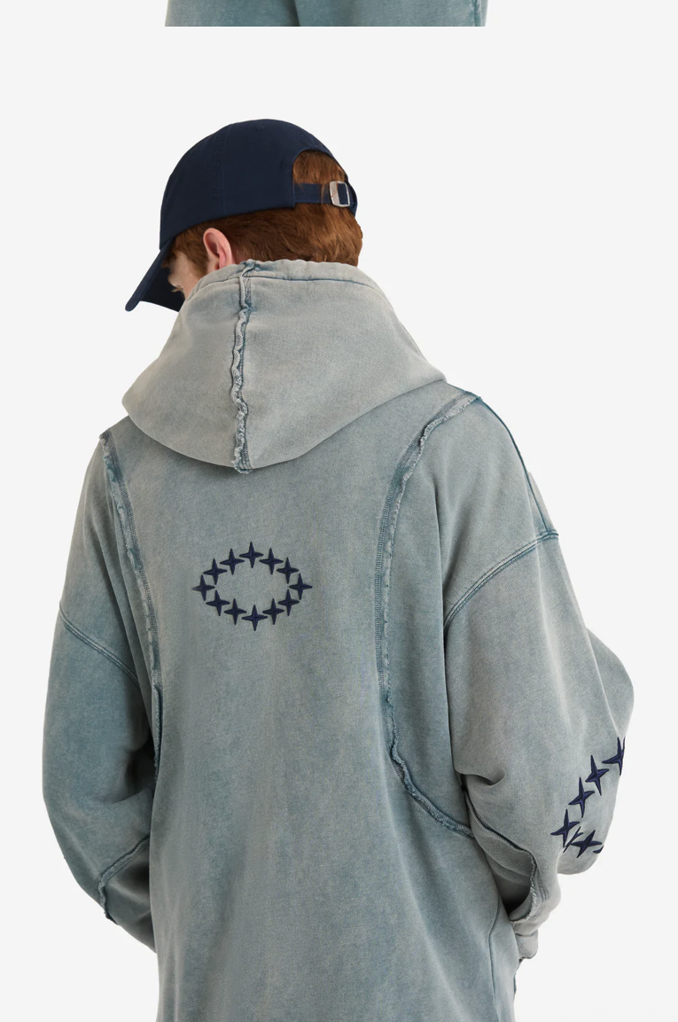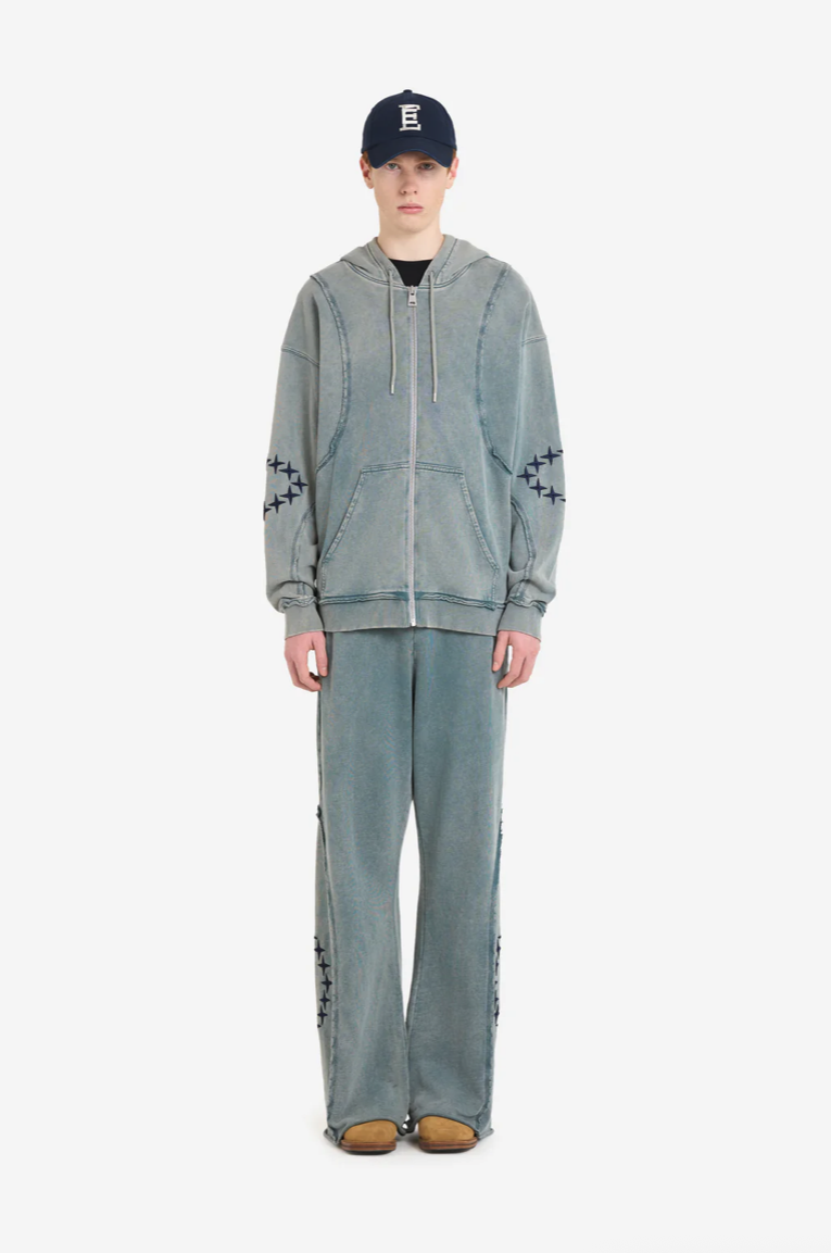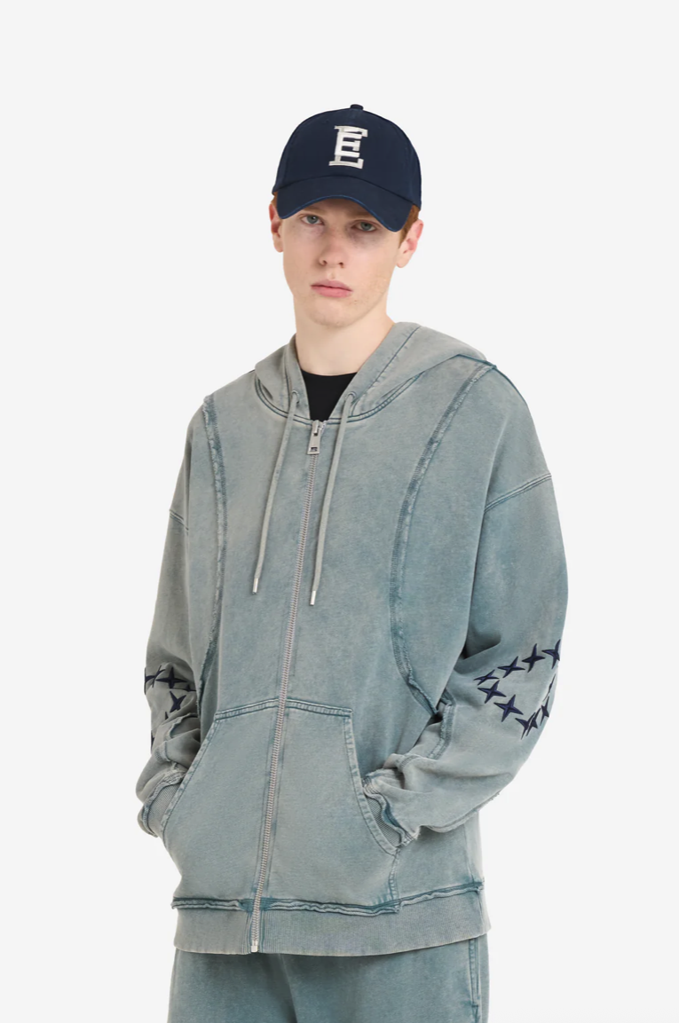 Толстовка на молнии Zip Hoody Raw Edges Pale Blue выполнена из органического хлопка американского производства без начеса. Передний карман, необработанные края спереди и сзади, а также специальный логотип Europa по бокам.