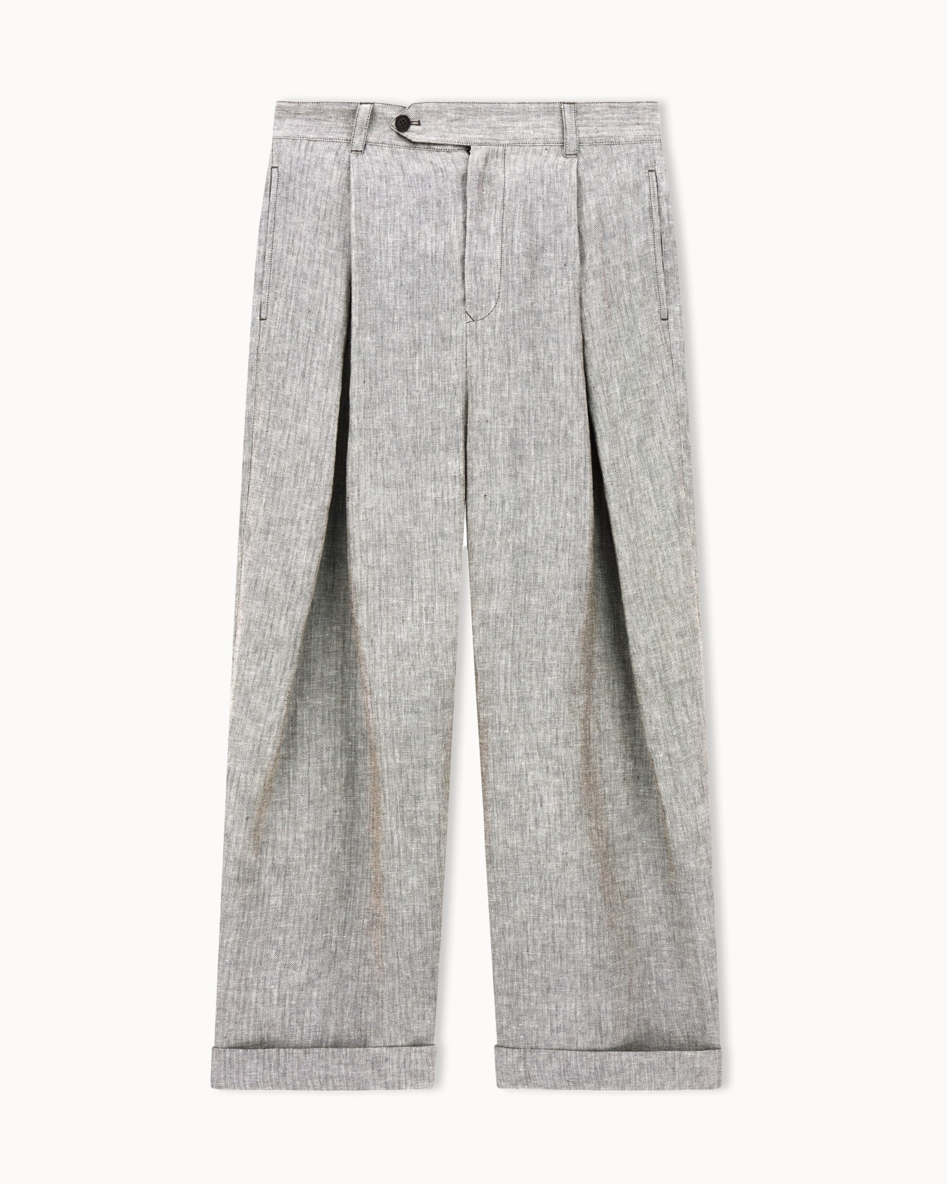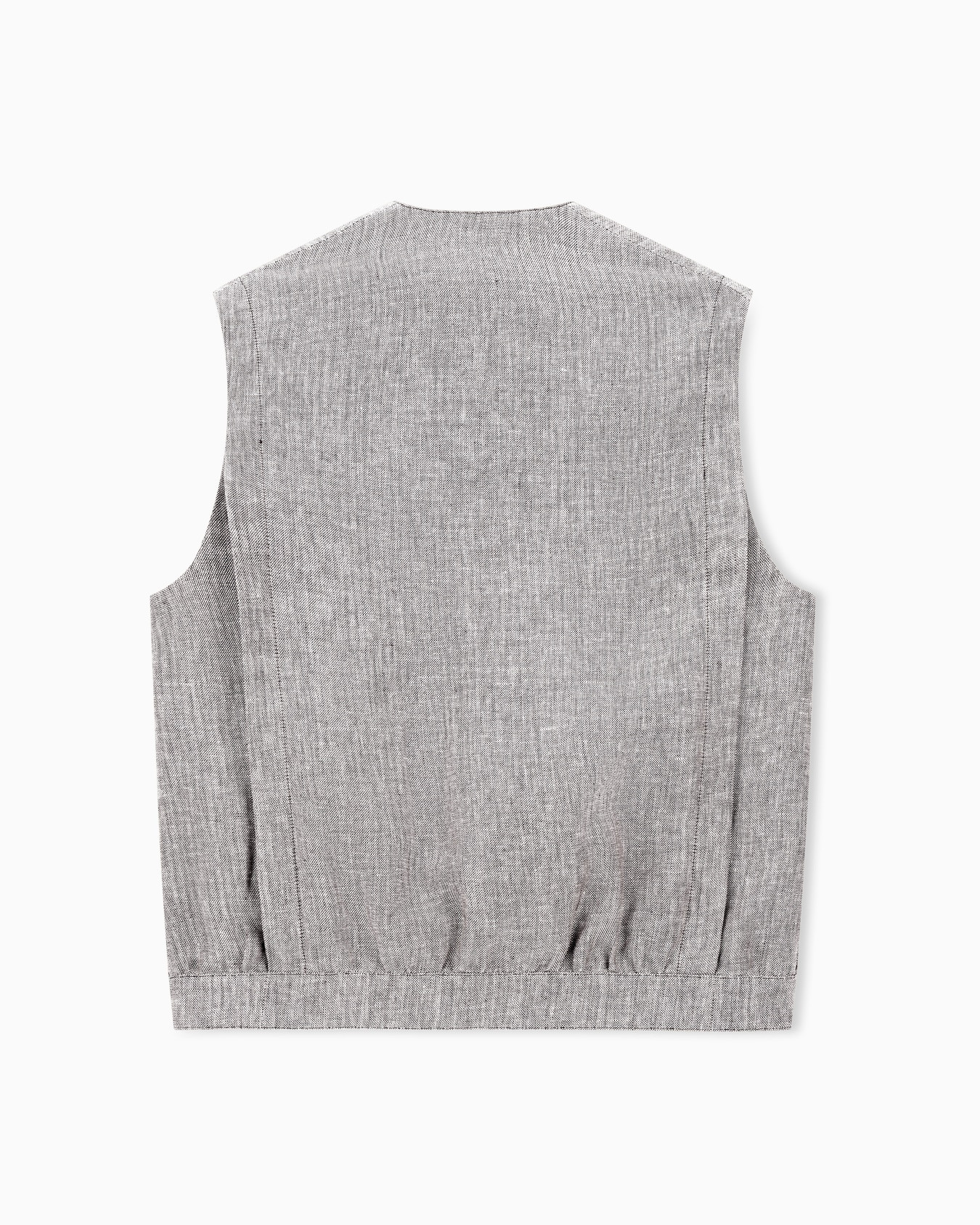 Жилет из меланжевого льна, отличающийся асимметричной застежкой на две пуговицы. Модель идеально сочетается с брюками, создавая изысканный и современный завершенный образ.