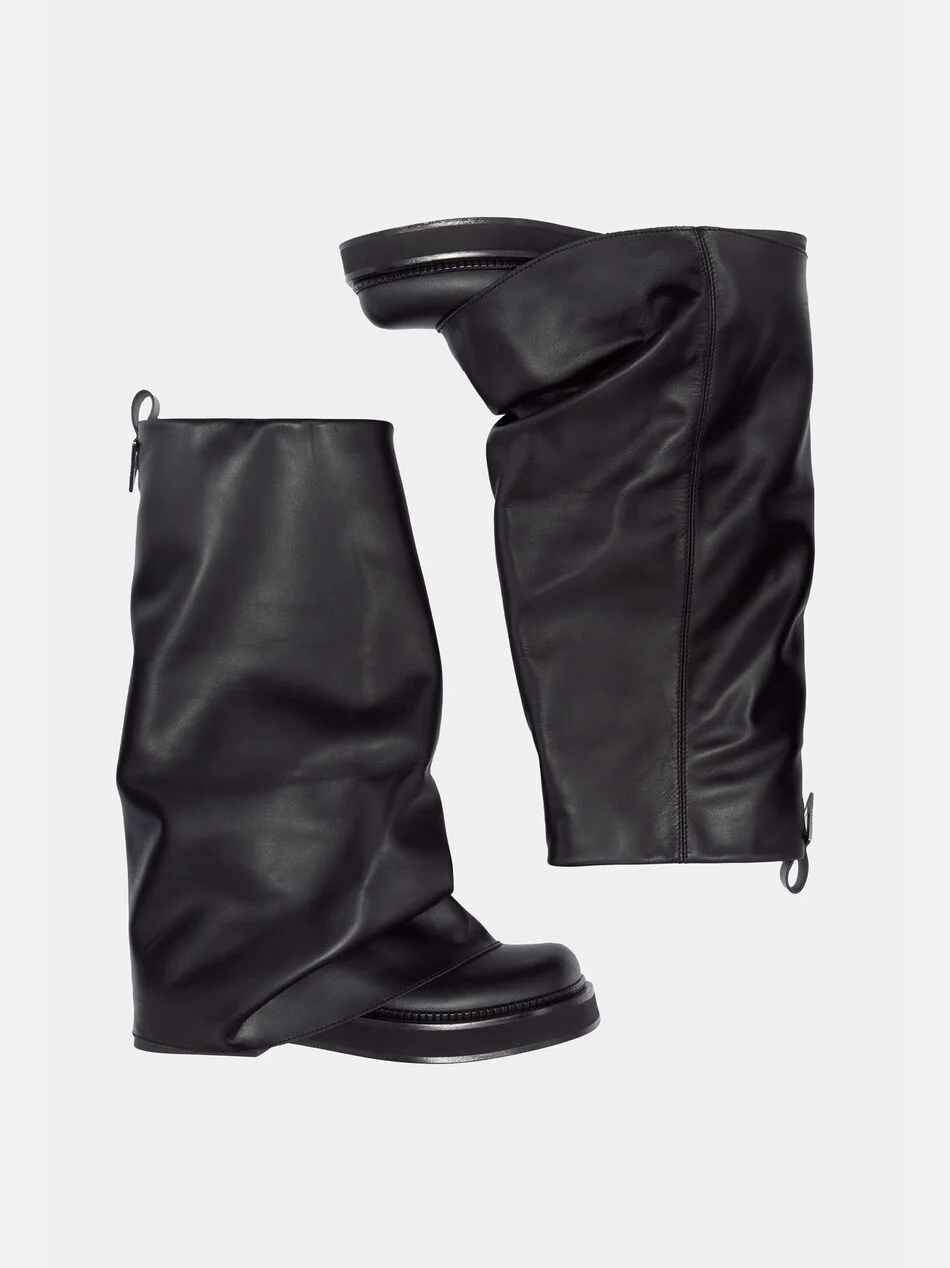 Ботинки в стиле милитари «Робин» из черной телячьей кожи. Сделано в Италии.