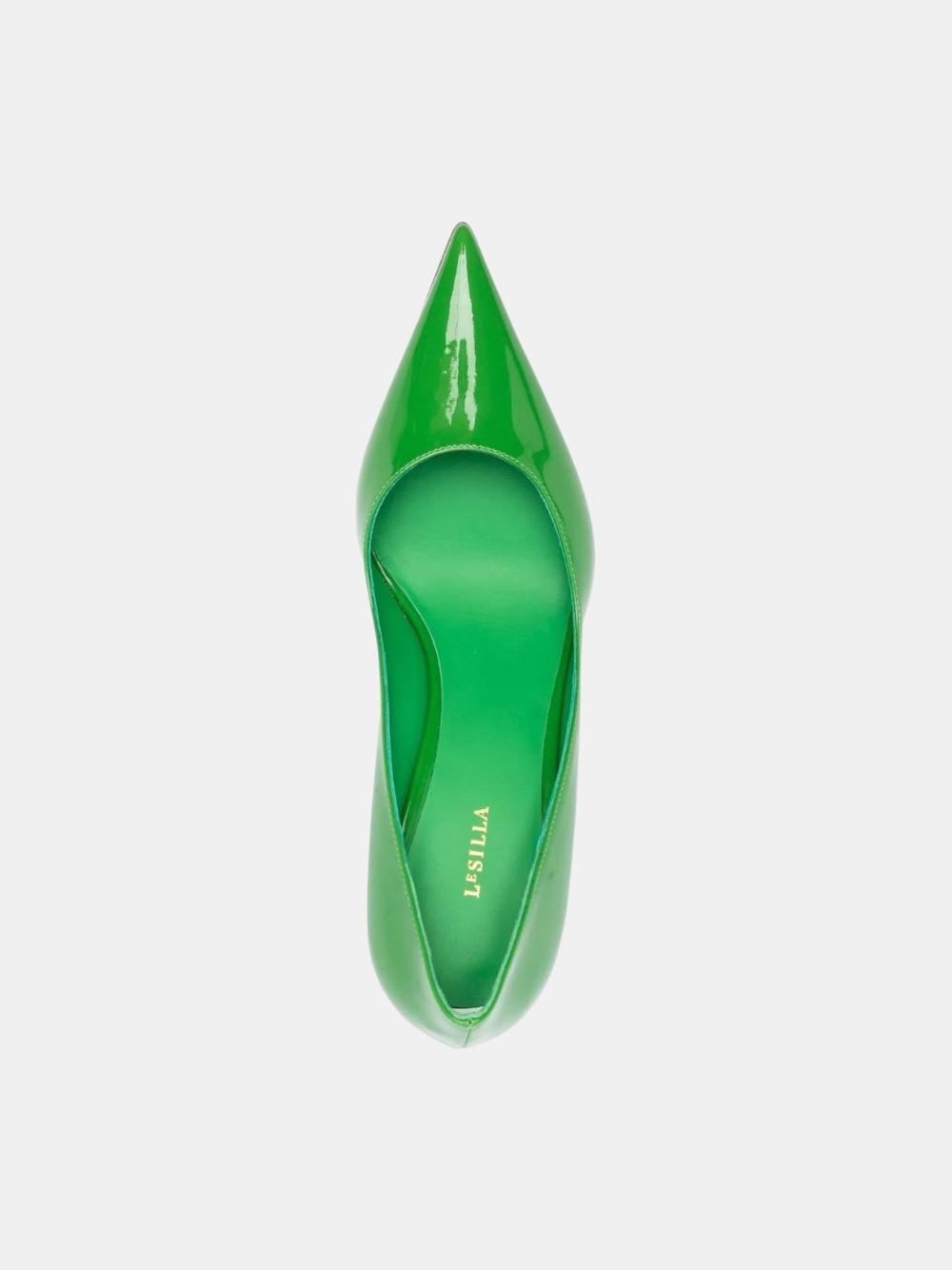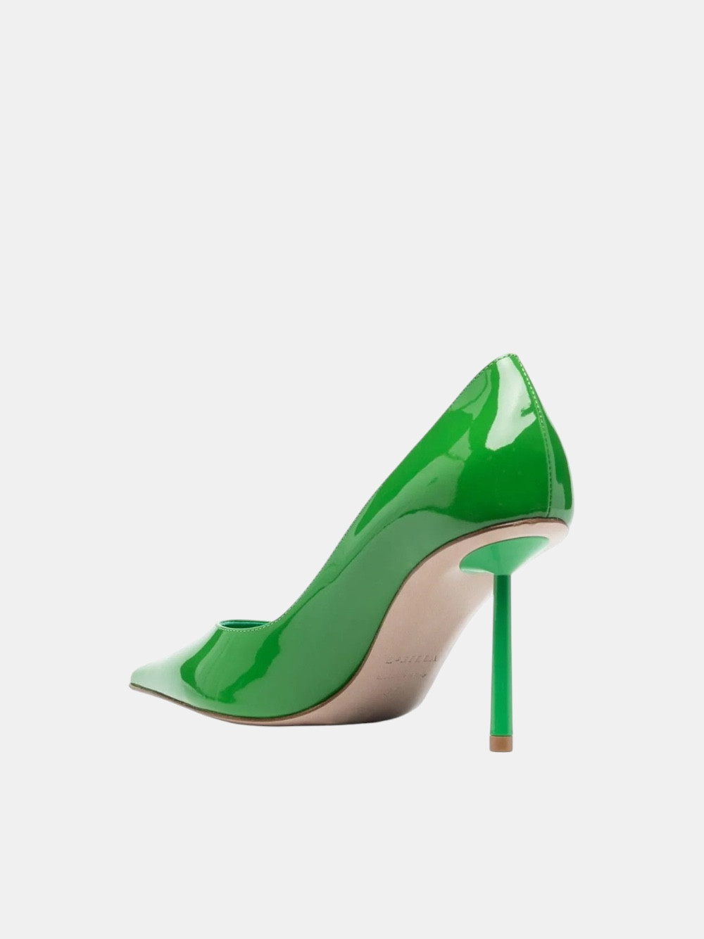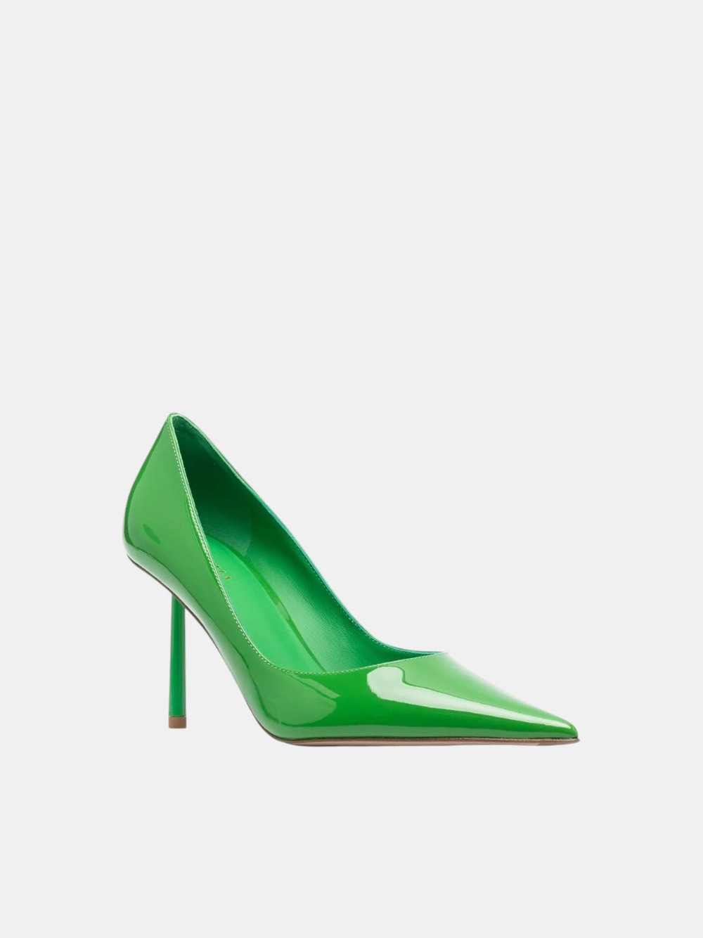 Туфли Eva на шпильке. Телячья кожа, глянцевая фактура, заостренный носок, модель без застежки, каблук на высокой шпильке, стелька с логотипом и резиновая подошва. Высота каблука 100 мм.