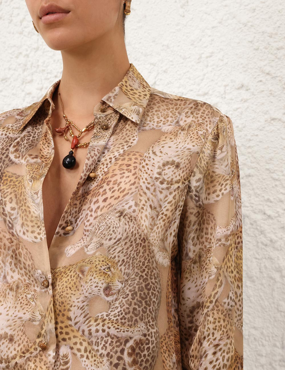 Рубашка Rebellion Relaxed Shirt цвета Latte Leopard.