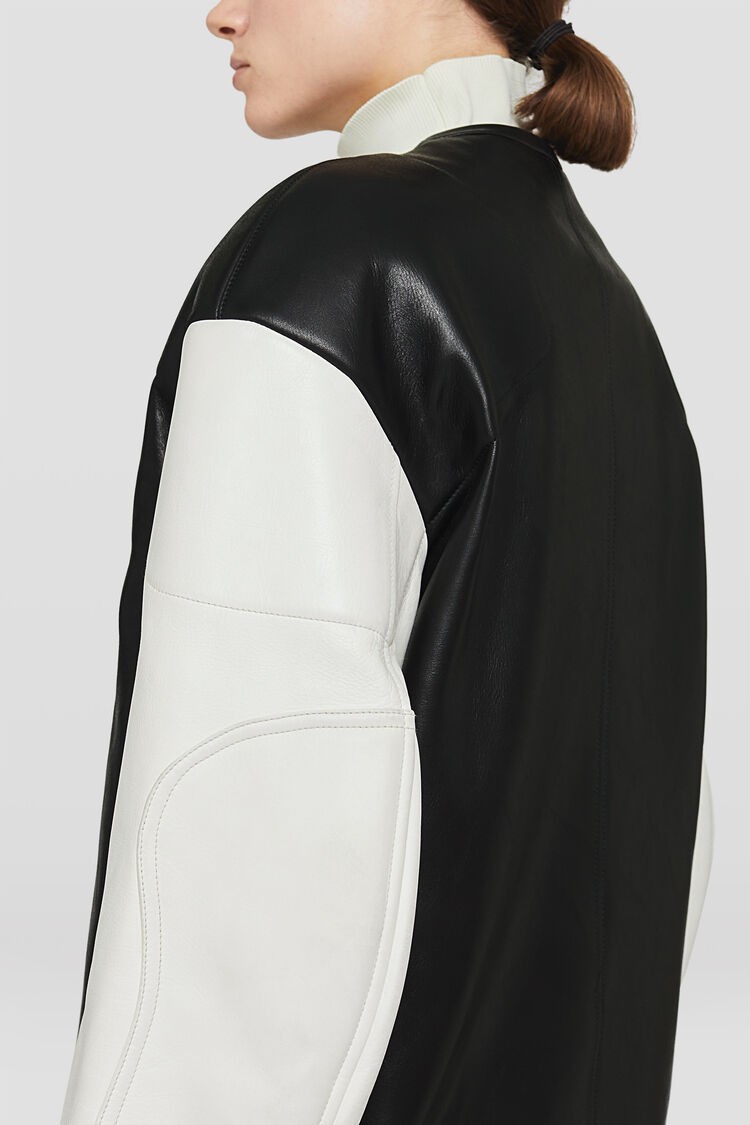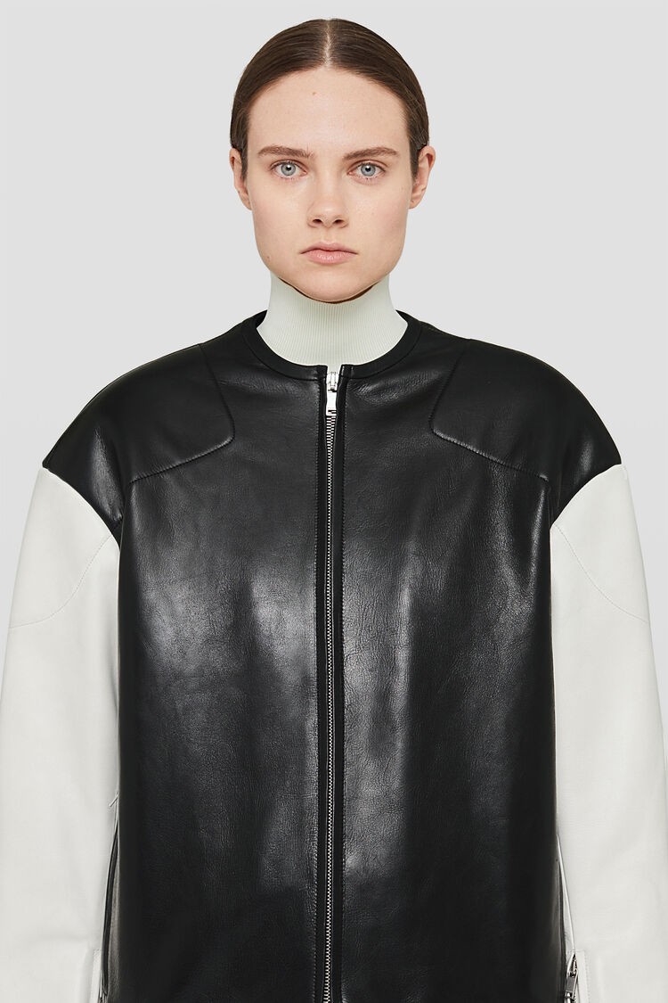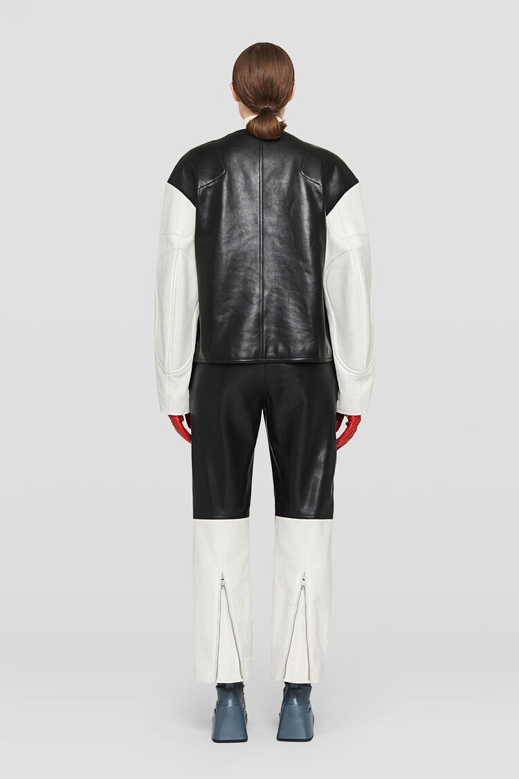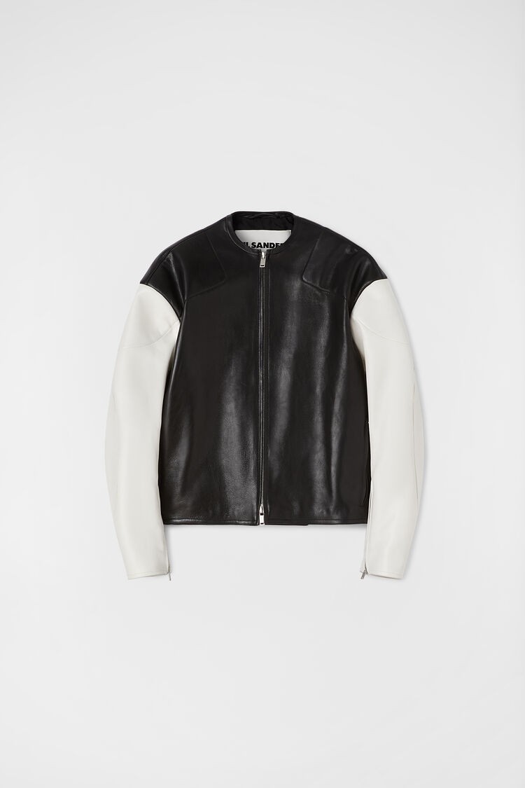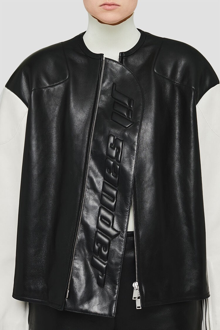 Кожаная косуха с мягкими накладками и тисненым логотипом Jil Sander.