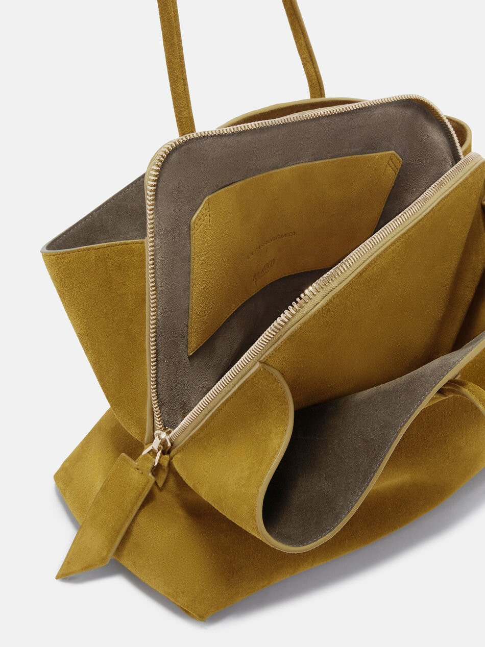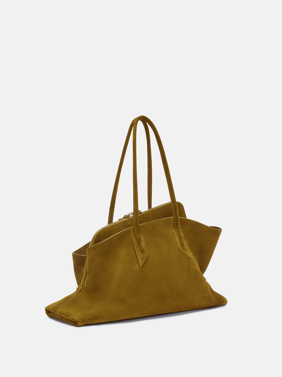 Сумка «La Passeggiata Medium» с верхней ручкой, выполнена из светло-зеленой замши, имеет внутренний карман на молнии и трубчатые ручки. Сделано в Италии.