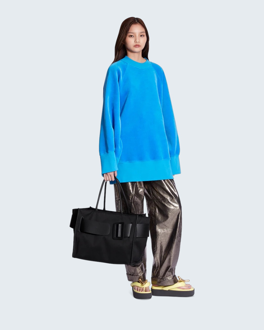 Сумка из регенерированного нейлона ECONYL® и кожи с застежкой-молнией. Большая металлическая пряжка и кожаная пряжка. Кожаный пояс с двумя ручками для переноски. Внутренний кожаный карман. *ECONYL® — это экологически чистое волокно, получаемое благодаря инновационному процессу регенерации. В отличие от традиционного нейлона, регенерированный нейлон ECONYL® может быть переработан, воссоздан и переформован снова и снова.