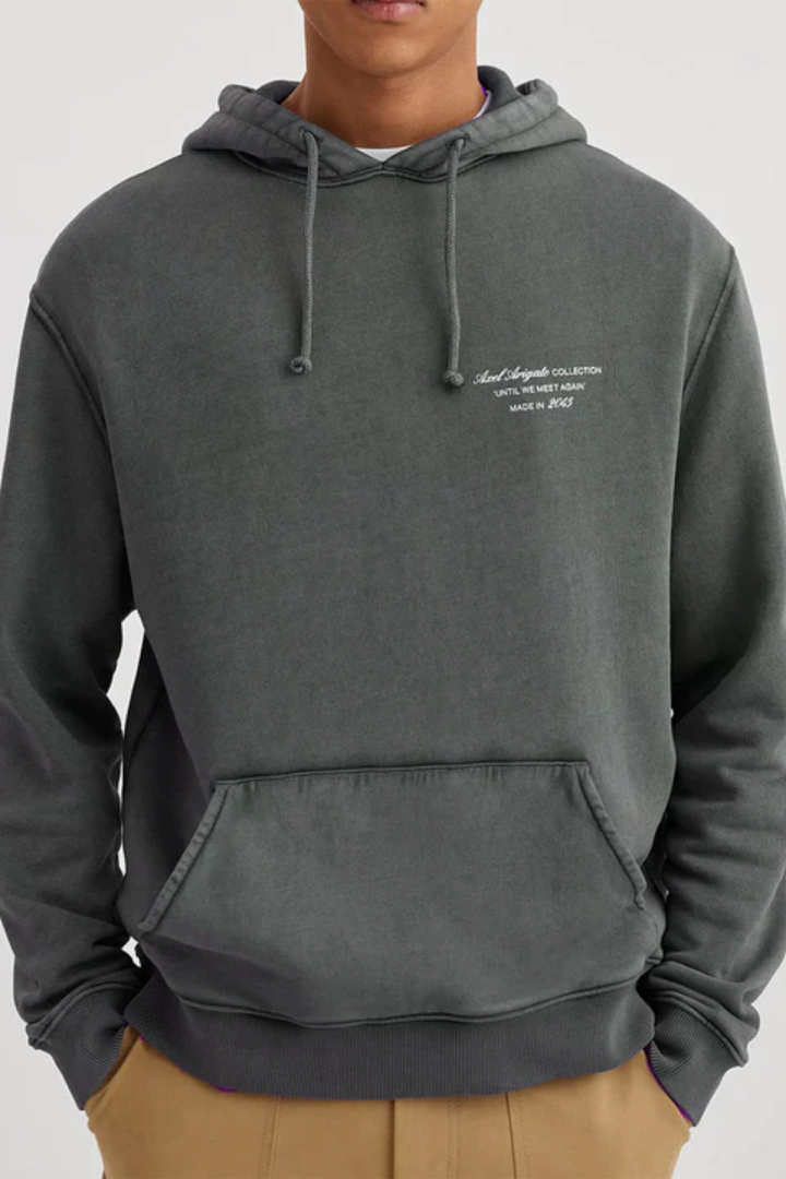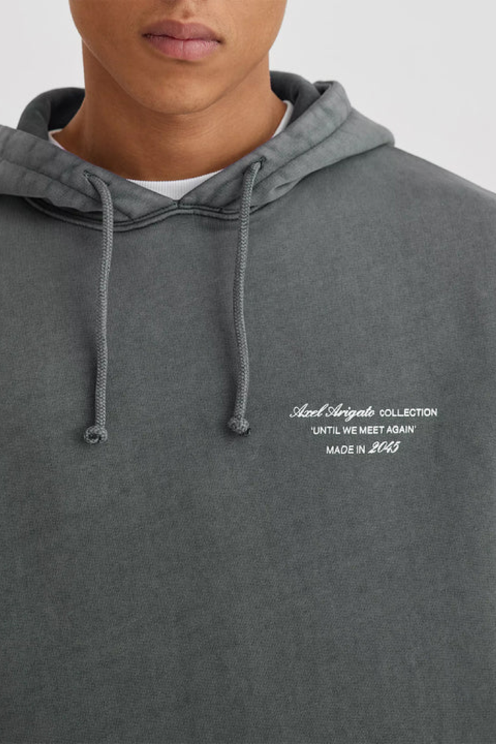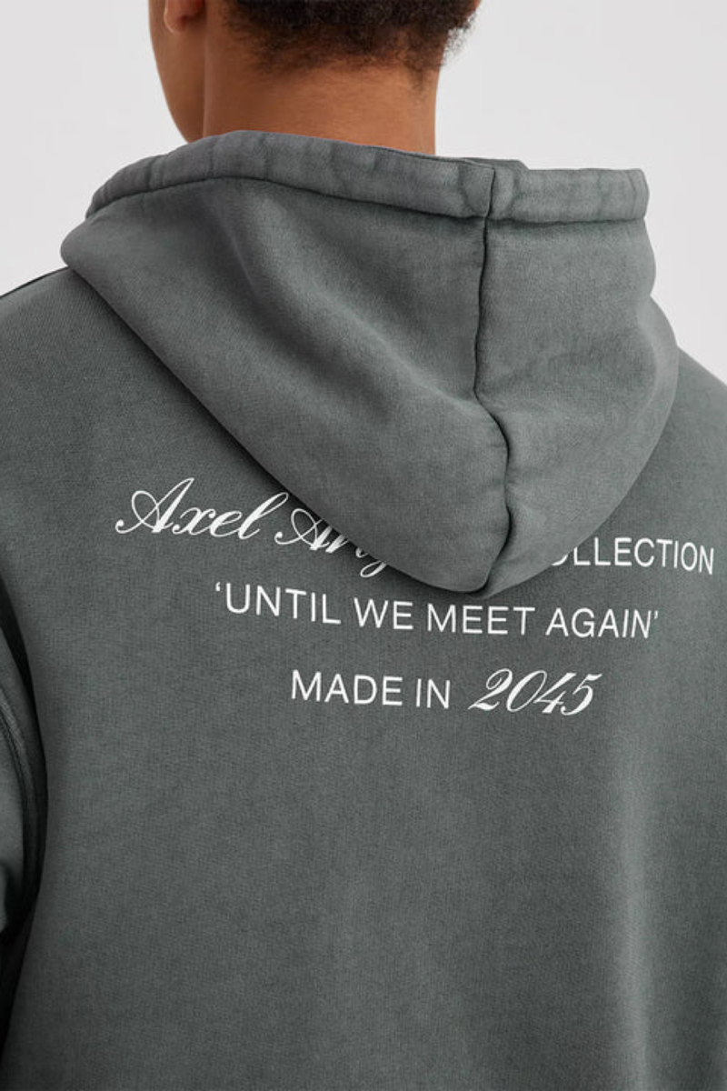 Хлопковый свитшот с кулиской традиционного кроя от Axel Arigato украшен надписью спереди и сзади, которая гласит: «Пока мы не встретимся снова».