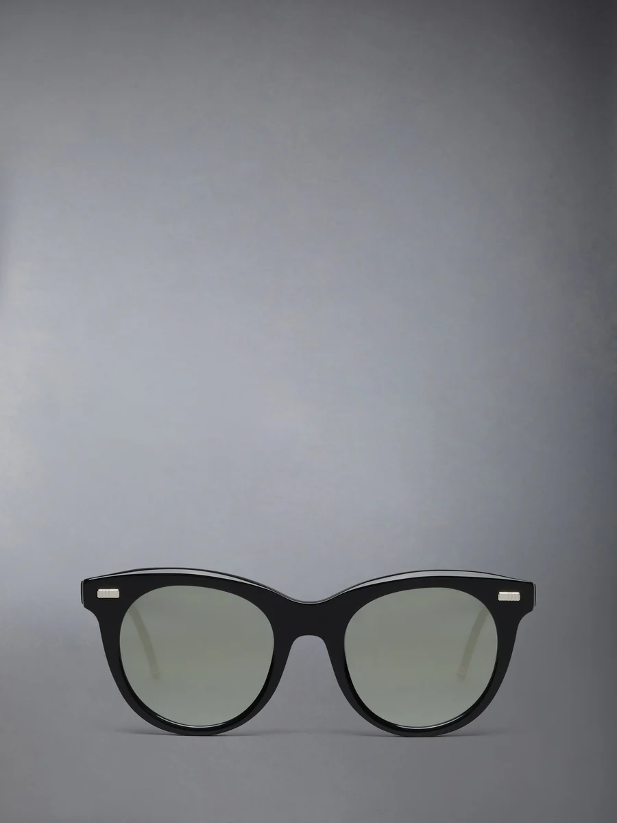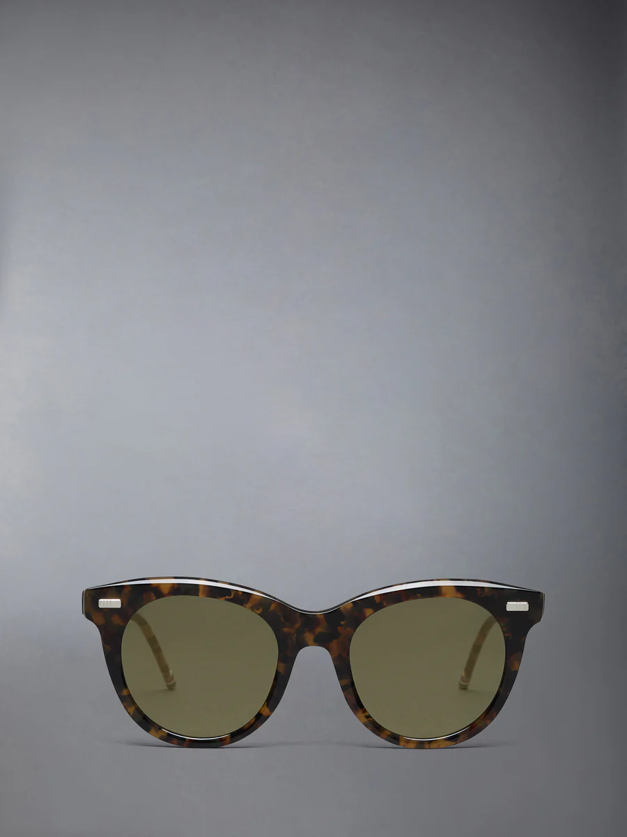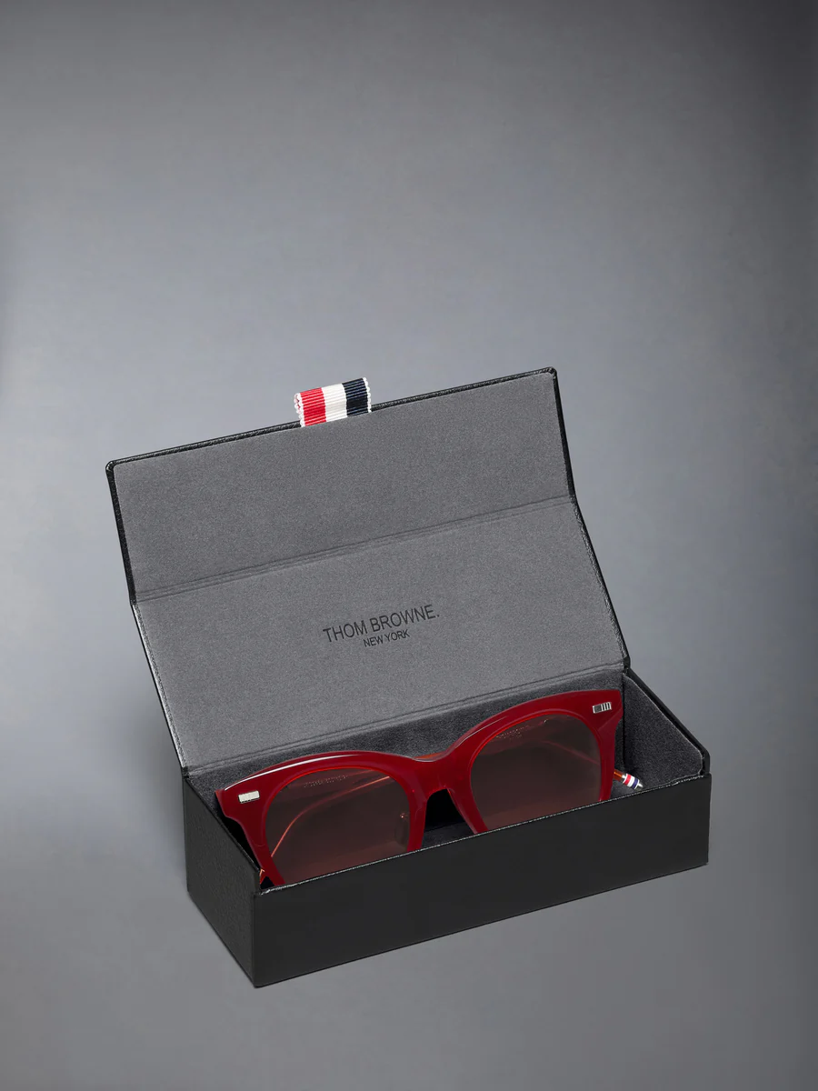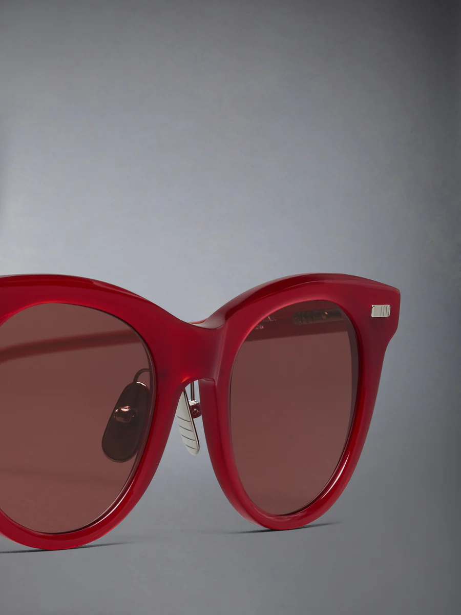 Изготовленные в Японии из высококачественного ацетата, очки в форме «кошачий глаз» передают выразительный дух своего происхождения в середине прошлого века, выраженный в языке дисциплины и внимания к деталям Тома Брауна. Оснащены антибликовыми линзами, а оправа отделана фирменной четырехполосной отделкой и трехцветными эмалированными наконечниками заушников.