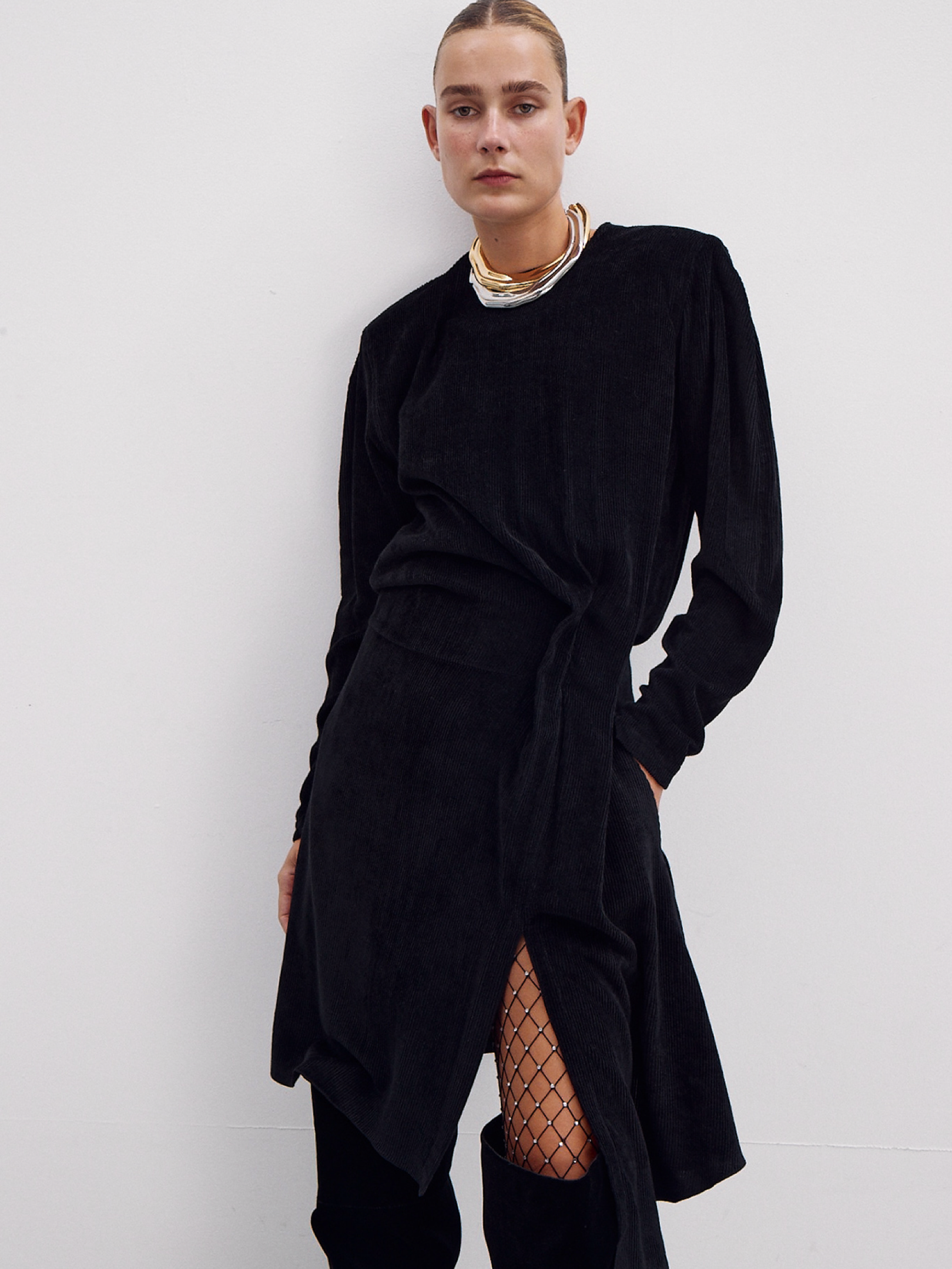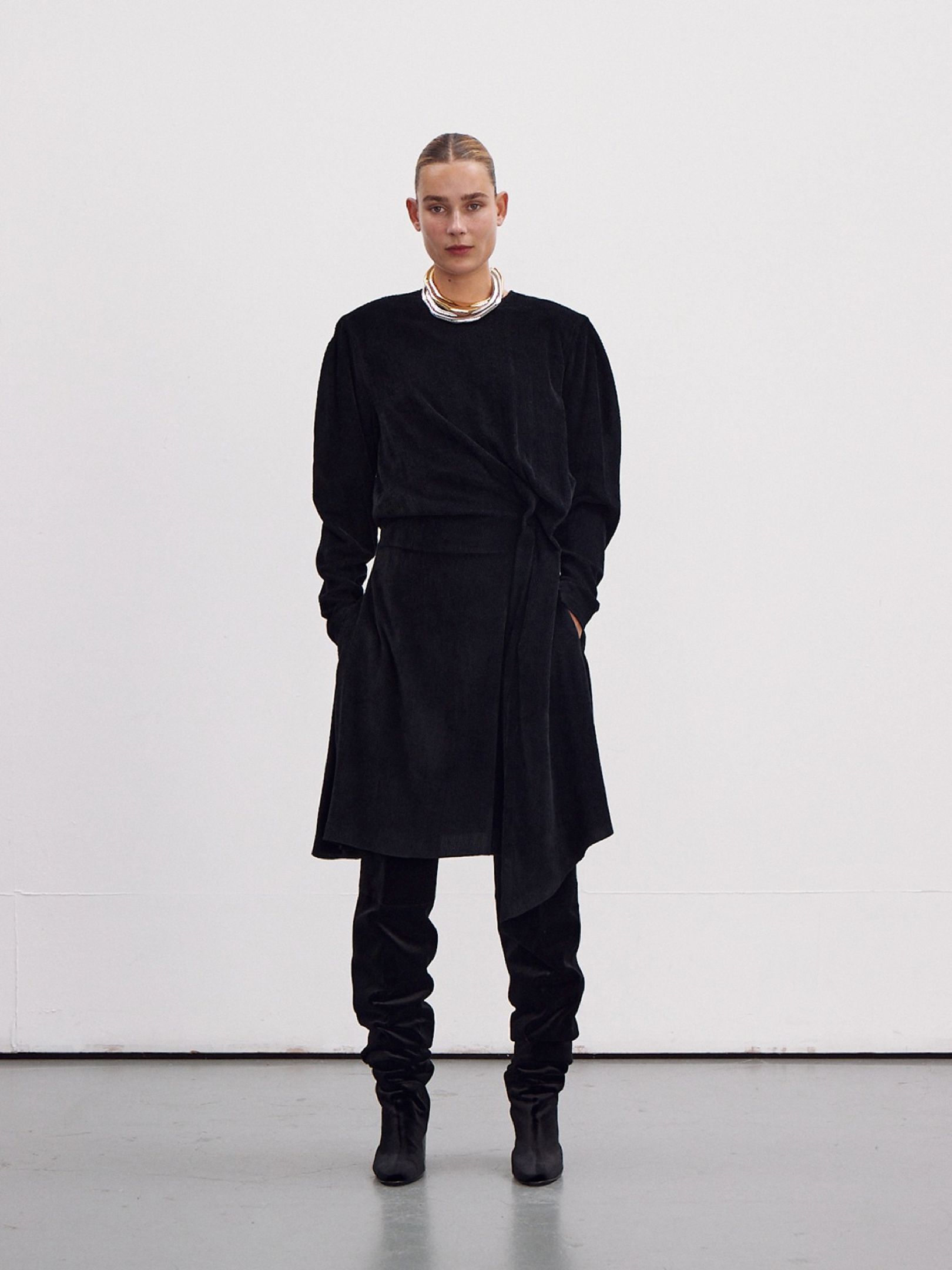 Длинное платье из итальянского бархатного вельвета от PRATO FABRICS