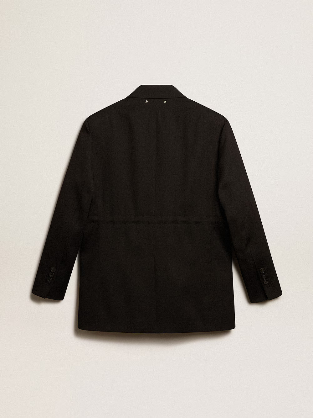 Уникальная коллекция, воплощающая в себе ДНК Golden Goose, призванная оставаться с вами каждый день, несмотря ни на что, в дождь или солнечную погоду. Женский смокинг черного цвета из шерсти с тремя карманами спереди и двумя звездами сзади.