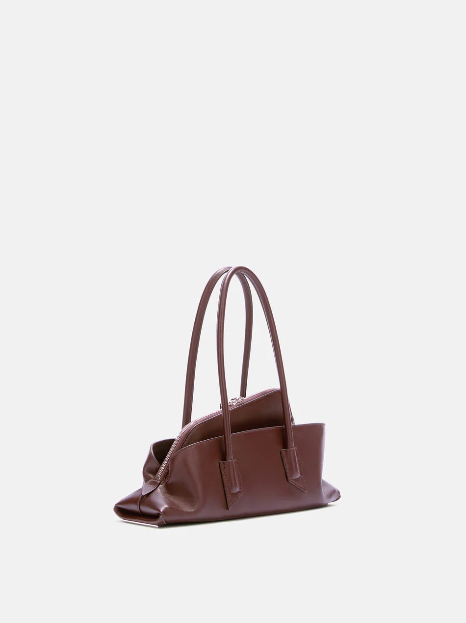 Сумка «La Passeggiata Small» с верхней ручкой, выполненная из темно-коричневой телячьей кожи, с внутренним карманом на молнии и трубчатыми ручками.