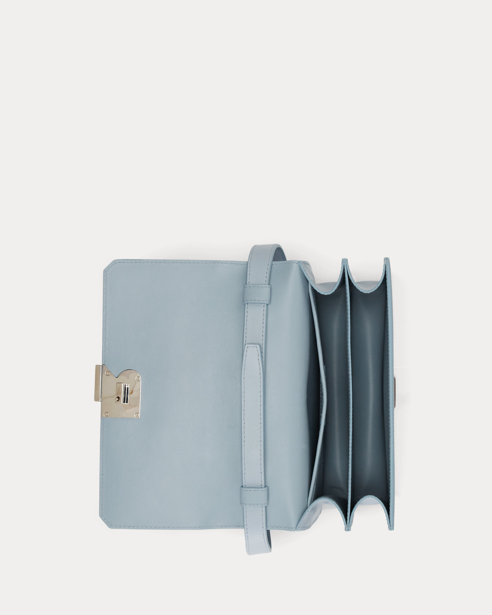 Cумка с внутренним отделением из двух отделений, верхней ручкой и съемным регулируемым ремнем через плечо, украшенным двумя полированными держателями, изысканно изготавливается вручную и индивидуально в Италии из материалов высочайшего качества. Тридцать шесть кусков тончайшей итальянской телячьей кожи умело отобраны и вырезаны вручную флорентийскими мастерами для создания корпуса — анилиновая отделка и твердость на ощупь способствуют структурированному профилю сумки, а подкладкой служит кожа ягненка наппа. Фирменная монограмма «RL», воплощающая изящную функциональность и роскошную форму, представляет собой скульптурную застежку-кнопку с отделкой из палладия, латуни или шампанского. Дополнительные штрихи, в том числе изящная набивка «бомбе» на клапане и расписанные вручную края, демонстрируют приверженность мистера Лорена к мельчайшим деталям.