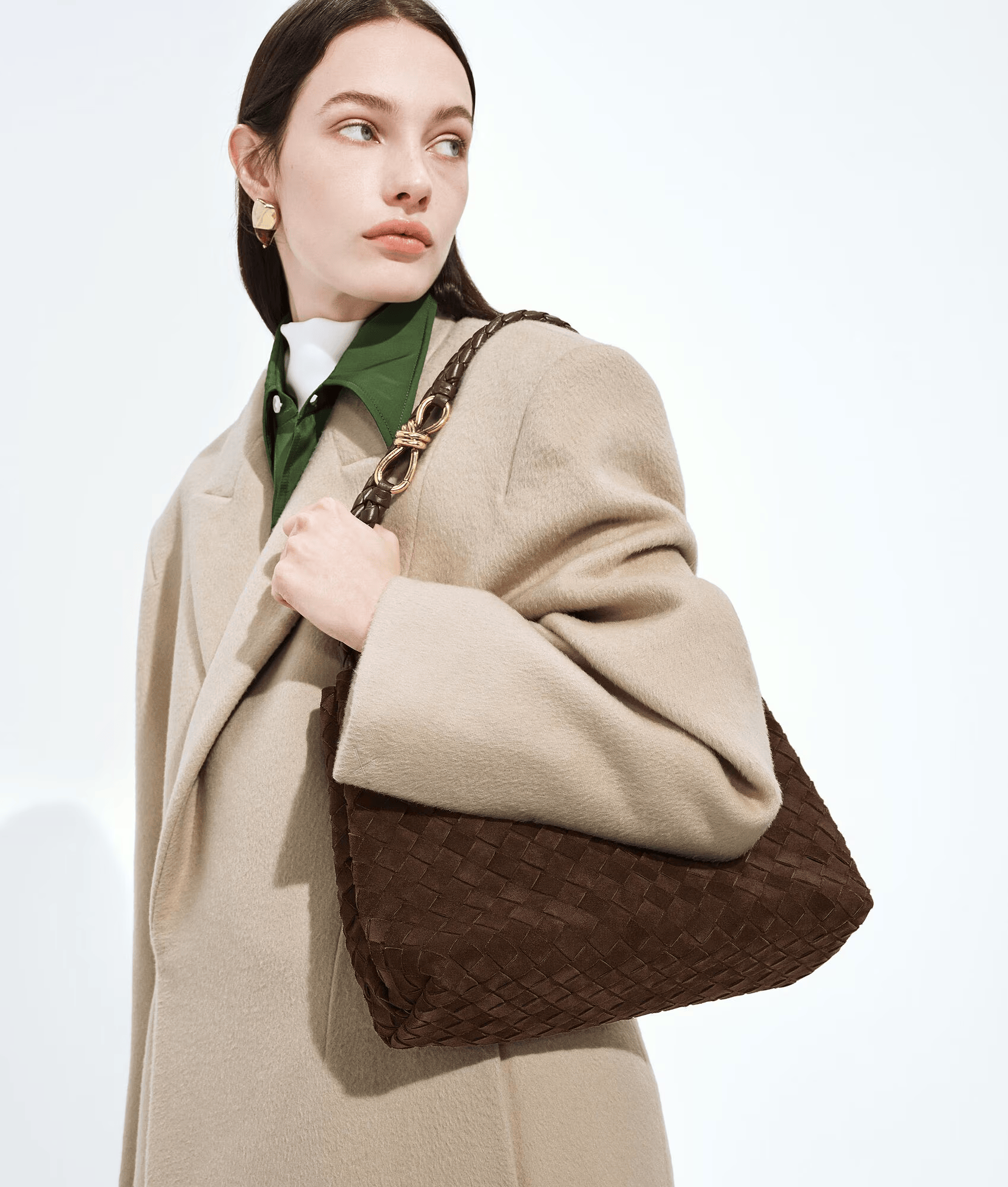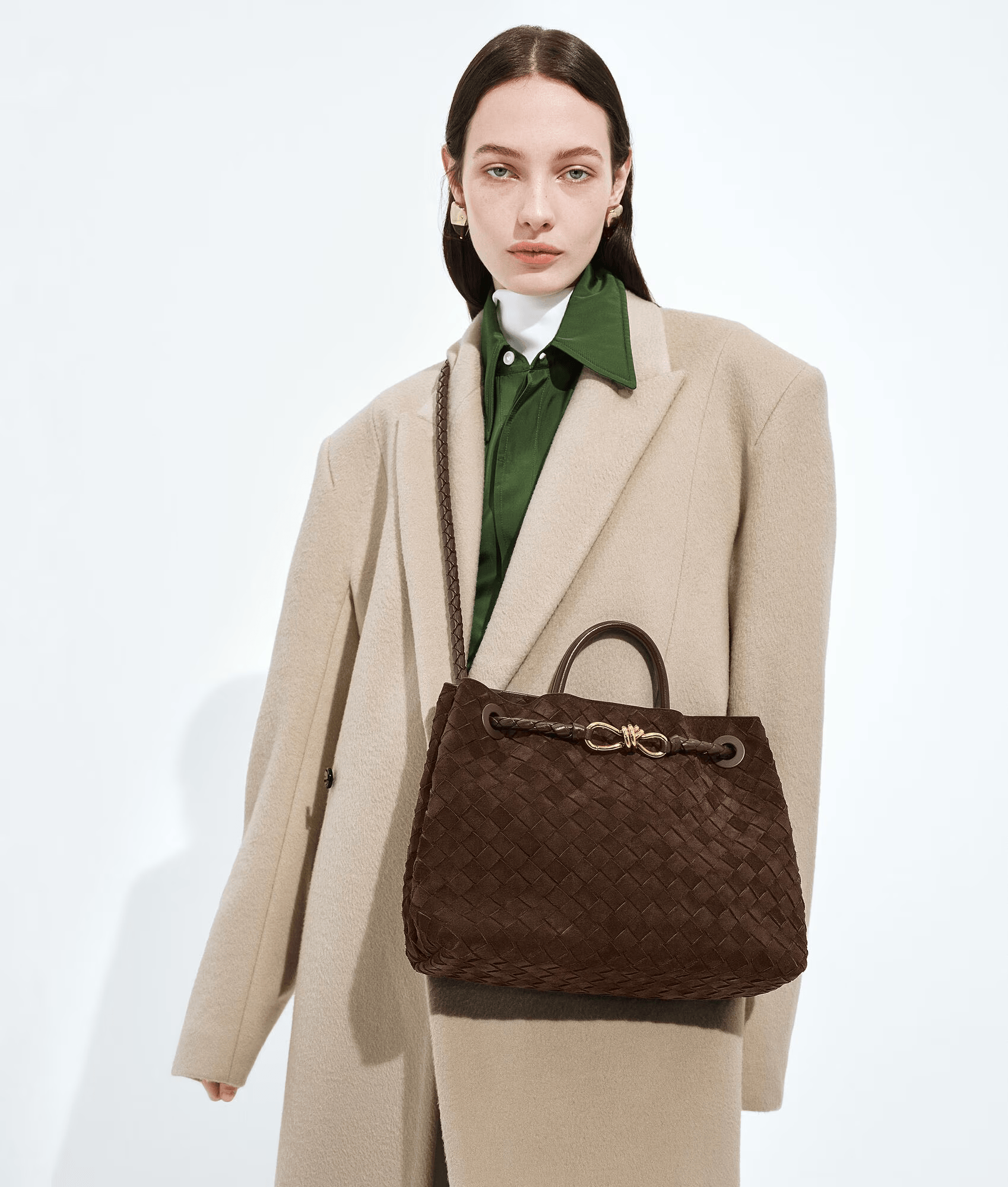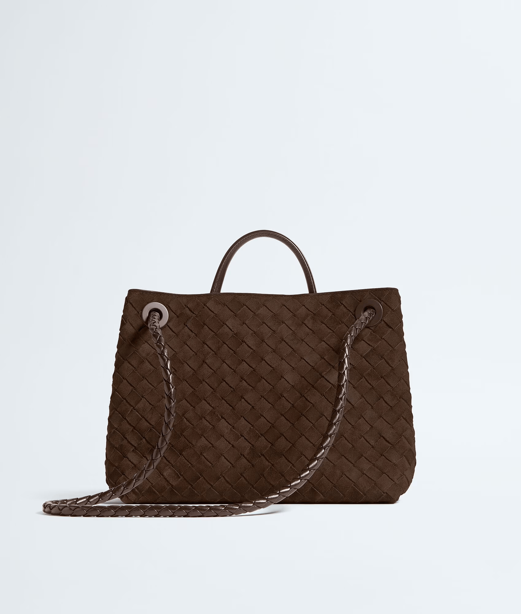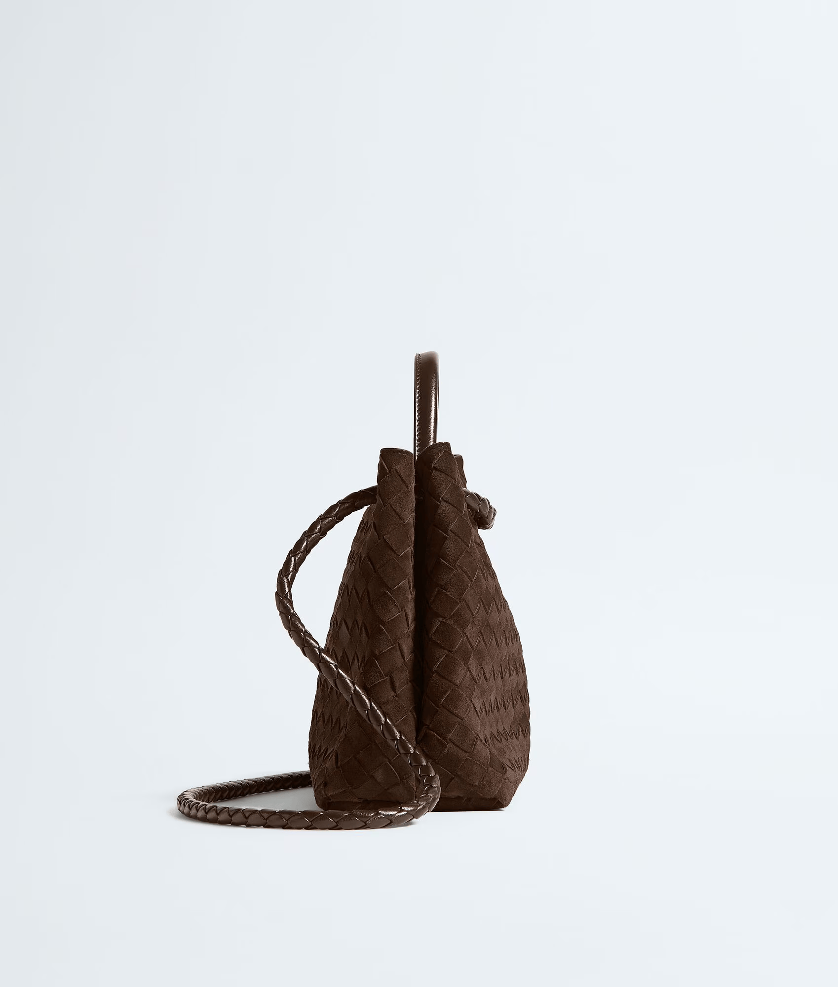 Сумка с верхней ручкой из мягкой замши Intrecciato с фирменным узлом и скользящим плечевым ремнем.